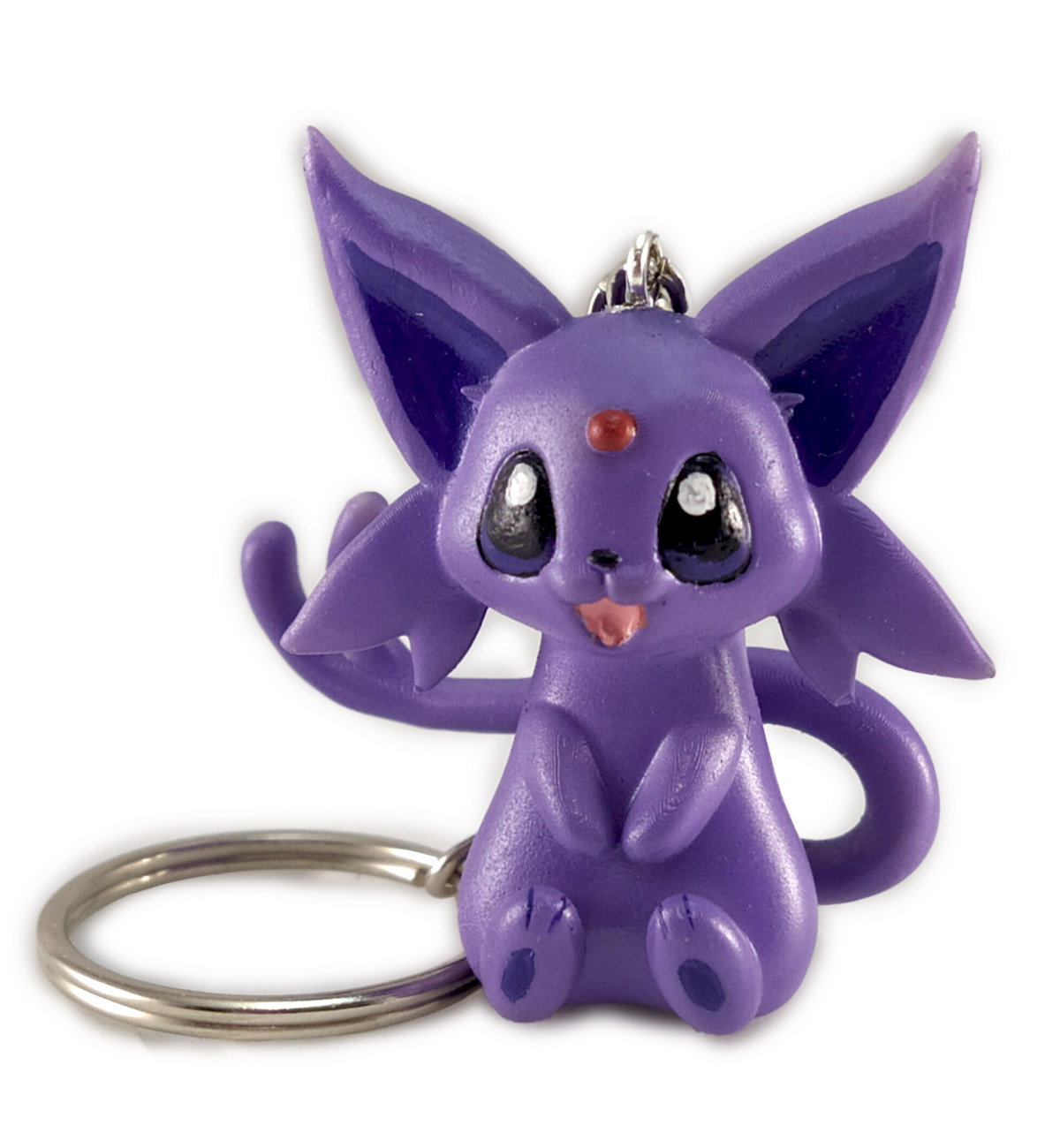 Portachiavi in resina a forma di pokemon Espeon in versione “chibi”. Soggetto con disegno ideato da me e stampato in 3D, utilizzando una resina resistente agli urti e cadute.